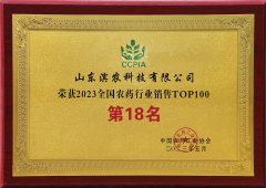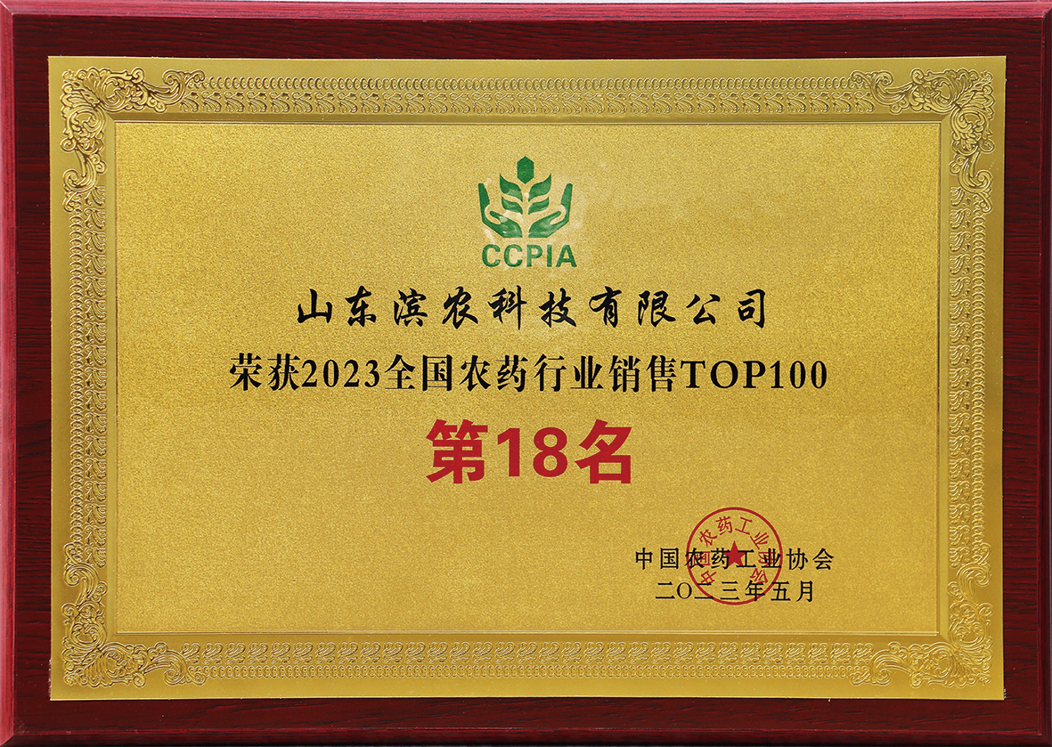 ■2023-06-13 濱農(nóng)科技榮獲 “2023全國農(nóng)藥行業(yè)銷售TOP100”第18名