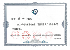 ■2023-10-09 我公司蔣偉榮獲2023年 濱州市企業(yè)“創(chuàng)新達(dá)人”榮譽(yù)稱號