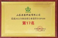 ■2022-08-30 濱農(nóng)科技位居2022全國農(nóng)藥行業(yè)銷售TOP100第17名