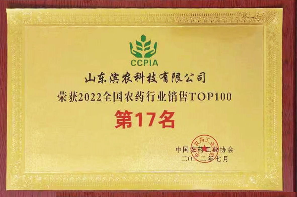 7月7日,中國農(nóng)藥工業(yè)協(xié)會(huì)在第九屆農(nóng)藥行業(yè)經(jīng)濟(jì)運(yùn)行分析會(huì)暨2022農(nóng)藥行業(yè)排行榜發(fā)布會(huì)上,發(fā)布了“2022全國農(nóng)藥行業(yè)銷售TOP100”榜單。濱農(nóng)科技以38.91億元的銷售額位居第17名。