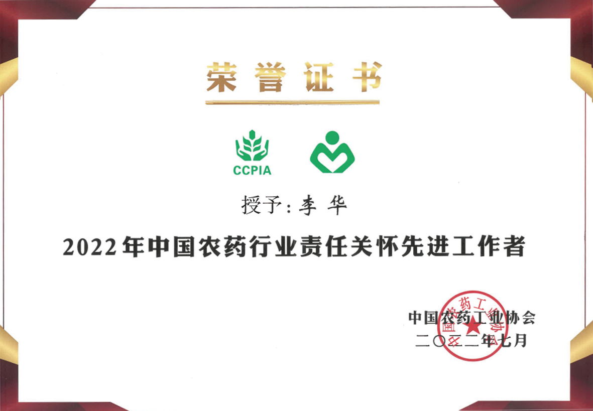 7月23日,中國農(nóng)藥工業(yè)協(xié)會(huì)第十屆六次理事會(huì)暨十屆九次常務(wù)理事會(huì)上正式發(fā)布了《2022中國農(nóng)藥行業(yè)責(zé)任關(guān)懷報(bào)告》,旨在將優(yōu)秀企業(yè)的實(shí)踐經(jīng)驗(yàn)作為典范,引導(dǎo)更多的農(nóng)藥企業(yè)踐行責(zé)任關(guān)懷理念,鼓勵(lì)企業(yè)自覺實(shí)施責(zé)任關(guān)懷。會(huì)議同期發(fā)布了2022年中國農(nóng)藥行業(yè)責(zé)任關(guān)懷優(yōu)秀踐行單位和先進(jìn)工作者名單,我公司榮膺“2022年中國農(nóng)藥行業(yè)責(zé)任關(guān)懷優(yōu)秀踐行單位”,董事長李華榮膺“2022年中國農(nóng)藥行業(yè)責(zé)任關(guān)懷先進(jìn)工作者”。