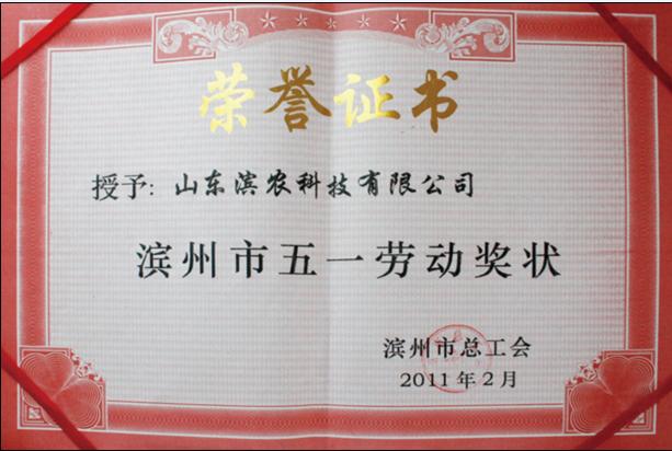 ■2011-02-25 我公司獲得濱州市五一勞動獎狀