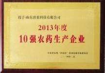 3 月 13 日,山東省農藥管理工作年會在濟南召開,公司董事長黃延昌應邀參會。會議公布了山東省農業廳組織的“四培育”活動先進單位評選結果:濱農科技獲得十強農藥生產企業第一名。這是我公司繼 2010 年、2012 年獲得第一名之后再次榮獲第一名。